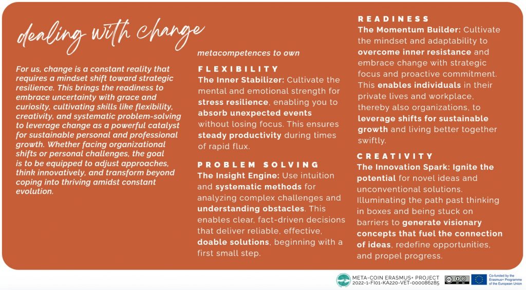 Metacompetences are the foundational psychological and cognitive skills that determine how effectively an individual can acquire, adapt, and apply all other specific or technical knowledge.