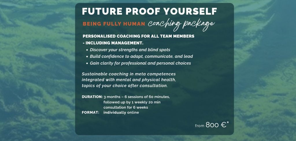 We fuse metacompetence learning with actionable physical and mental health practices for selfcare throughout the day. As human beings, we need to take care of ourselves to be at our best, elevating us to our best capacities. This holistic journey is human centred and creates emotional safety, resilience and joy in our private and professional lives.